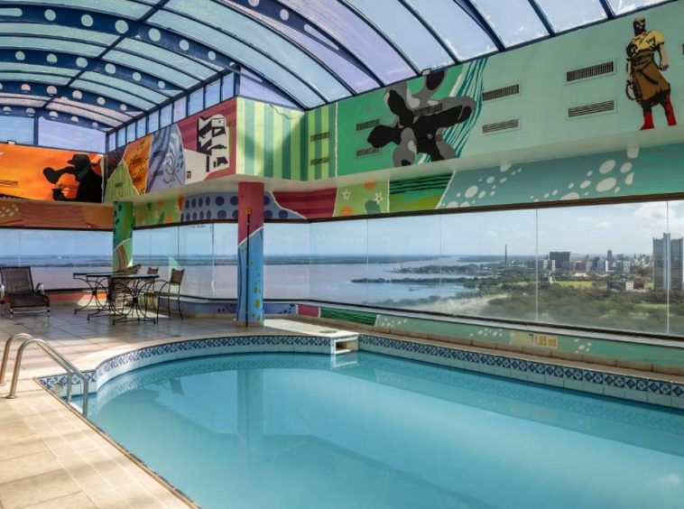 - Piscina coberta e aquecida com vista para a cidade.